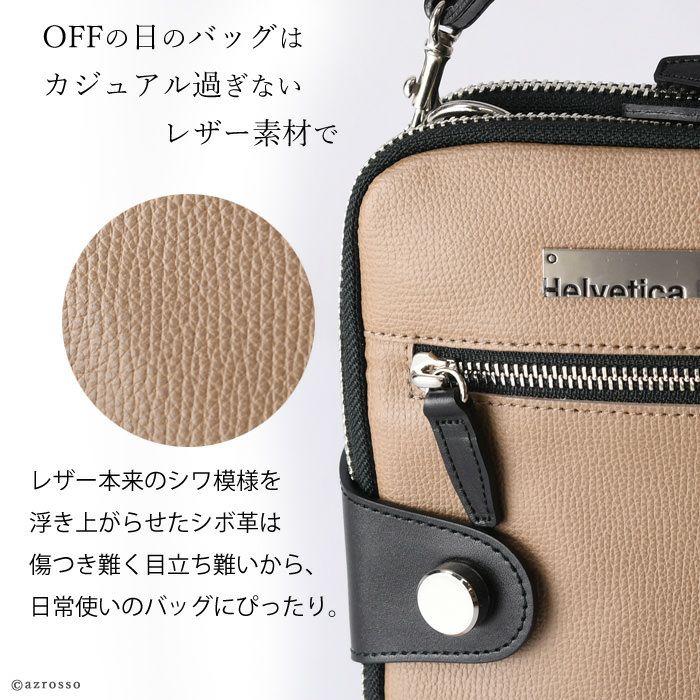 日本ブランドのミニマルな女性の為の本革ミニバッグ。サコッシュのように気軽なコンパクトさで整理整頓した収納ができる。大人の上質なカジュアルバッグはシンプルでユニセックスなデザイン。プレゼントにもオススメ 2way ミニバッグ ショルダーバッグ ポーチ レザー 軽量 収納 本革 日本製 バッグ ブランド ヘルベチカボールド Helvetica bold