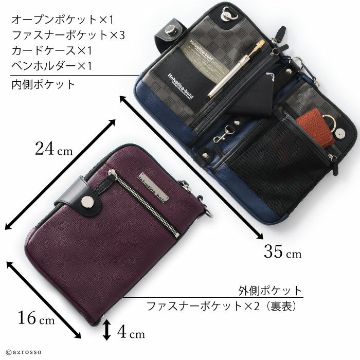 スマートにできる男の演出に最適なミニバッグ。高級感ある本革仕立て。ポケット多数で整理整頓しやすい。多機能 多収納なショルダーバッグはプレゼントにもオススメ 2way レザー バッグ ミニ ショルダーバッグ 本革 ポーチ メンズ ブラック ベージュ ワイン ブルー 日本製 ブランド ヘルベチカボールド Helvetica bold ミニバッグ