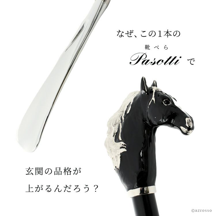 ラグジュアリーなイタリア製高級靴べら。真鍮で仕立てたロングタイプ。玄関を彩るイタリアブランドPASOTTI(パソッティ)のブラックアニマル(馬)モチーフの靴ベラは父の日ギフト、誕生日プレゼントにも最適 イタリア製 高級 靴べら 真鍮 ロング おしゃれ 黒 馬 シルバー ブラックホース アニマルヘッド シューホーン かっこいい メンズ