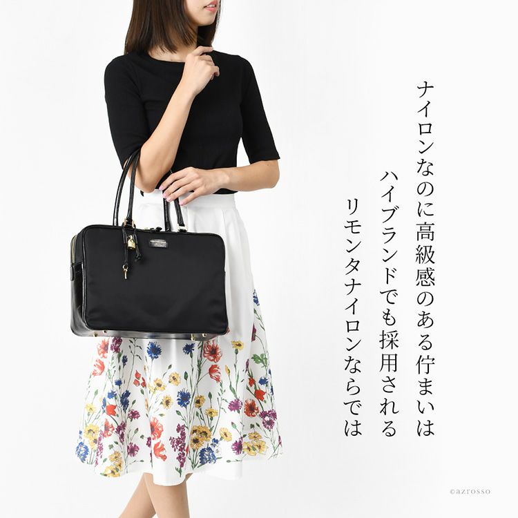 軽さと気品を両立した、高級リモンタナイロンのイタリア製ビジネストートバッグ。A4対応で大きめ、底鋲付きで自立、ファスナー付きで大容量。きれいめ通勤スタイルを格上げするスクエア型ナイロンバッグ イタリア製 高級 ナイロン ビジネスバッグ レディース ブランド 軽量 トートバッグ A4 肩掛け リモンタ ナイロン バッグ 通勤