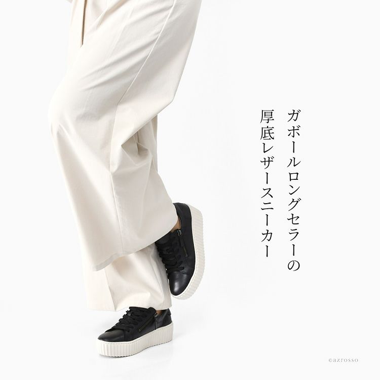 ドイツ製ガボールの本革スニーカー。3E幅広設計で足に優しく、脱ぎ履きしやすいサイドファスナー付き。厚底5cmでスタイルアップも。インソールは取り外し可能で衛生的。ふかふかクッションで長時間の歩行も快適 本革スニーカー レディース 3E 幅広 Gabor ガボール 厚底レザーシューズ ファスナー付き