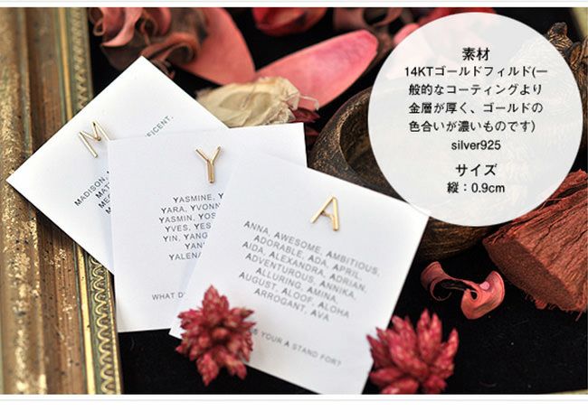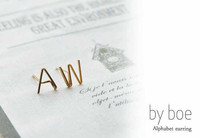 北欧の風がそよぐNYのシンプルアクセサリー・バイボー(by boe)で人気のアルファベットピアス 片耳から買えるアルファベット・イニシャル ピアス【by boe】バイボー ゴールド 正規品 【通常ネコポス配送】