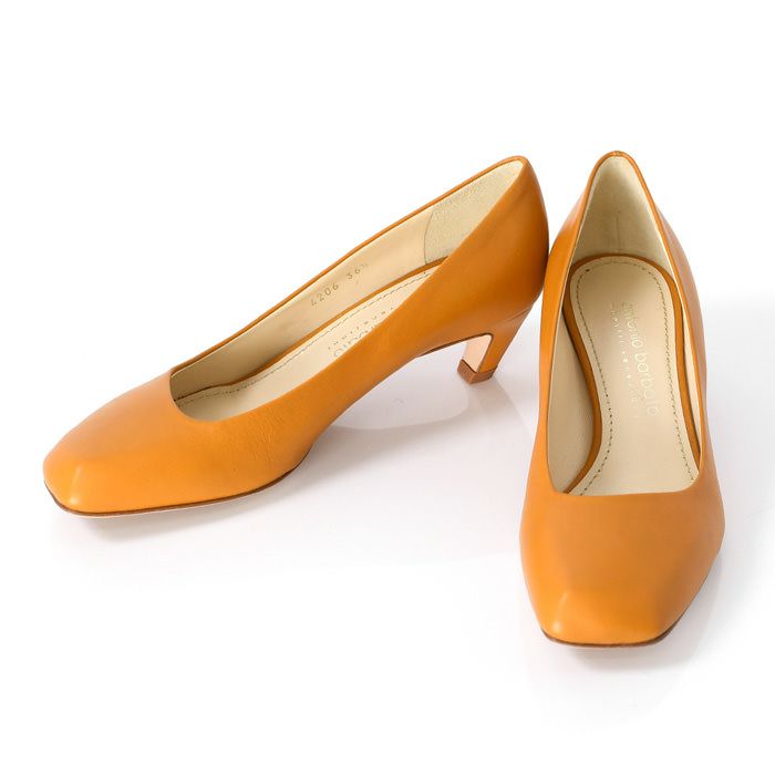 23cm-25cm│レザー パンプス スクエアトゥ 本革 4cm ローヒール オレンジ ピンク ベージュ