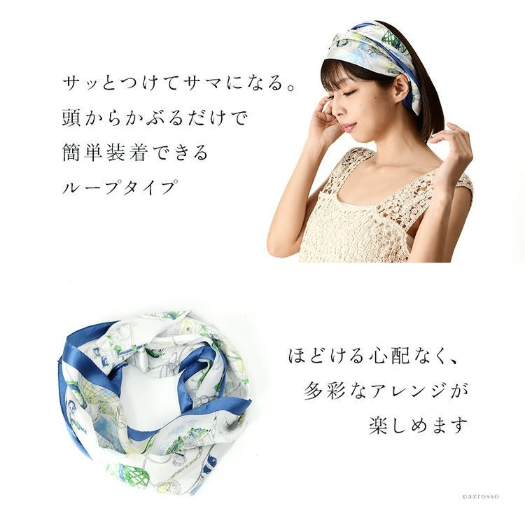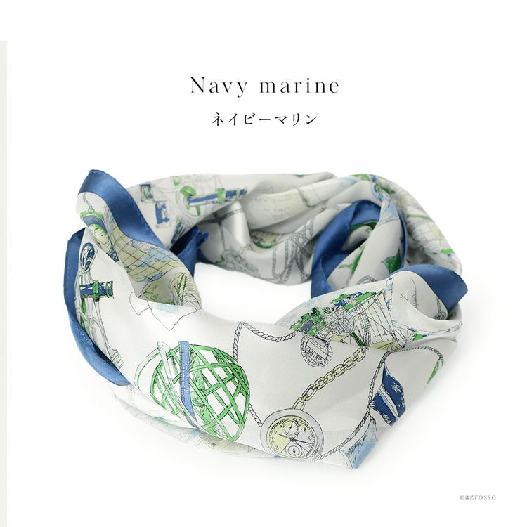 アドベンチャータイ シルク サテンストライプ ループスカーフ かぶるだけ マリン柄 シルク100% 薄手 日本製 横浜スカーフ【通常ネコポス配送】