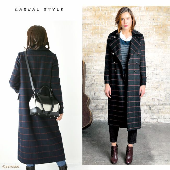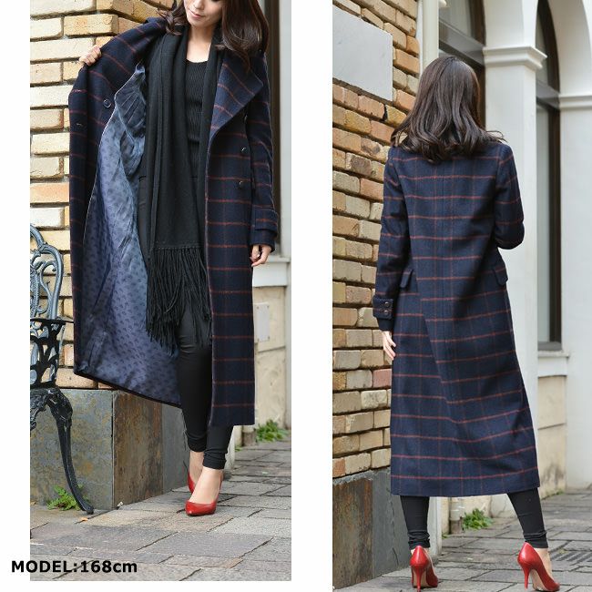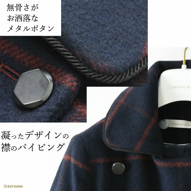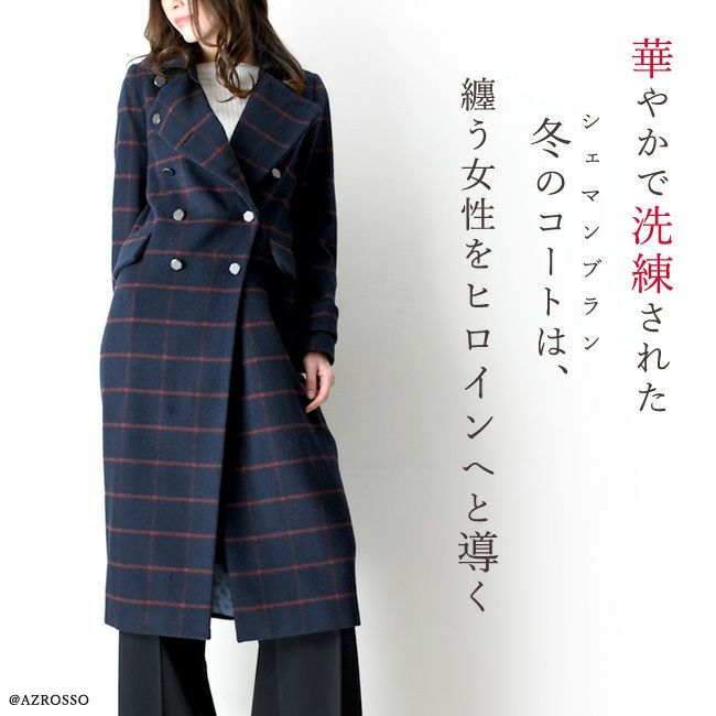 チェスターコート チェック ロングコート フランスブランド CHEMINS BLANCS シェマンブラン