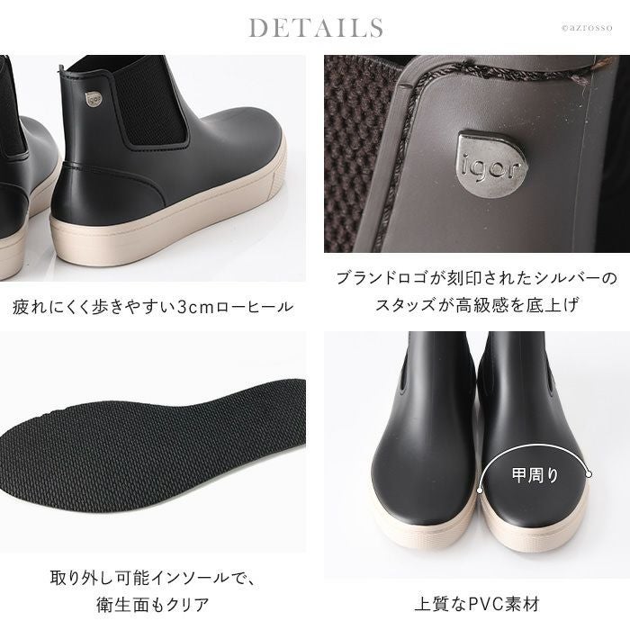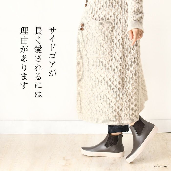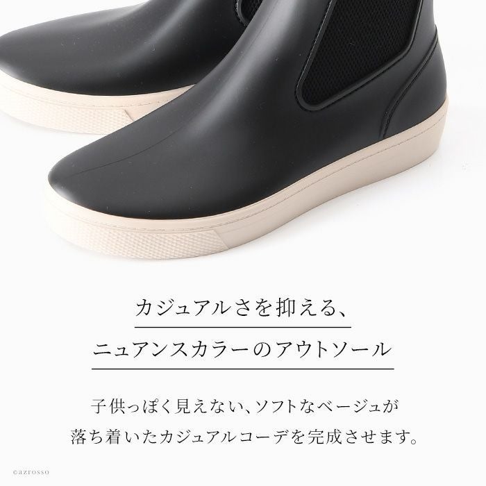 ▼特徴:ショート丈|サイドゴア|チェルシーブーツ|ローヒール|痛くない|履きやすい|歩きやすい|オフホワイトソール|雨靴|長靴