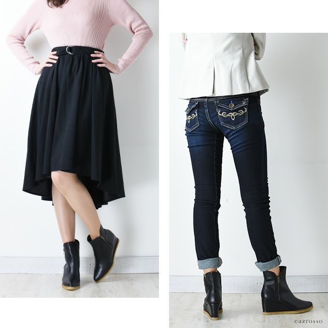 ヒールの高い靴は足も長く見えるし、エレガンス。だけど長く歩くと疲れやすいし、靴擦れも多い。そんな経験をして結局ローヒールやペタンコの靴に戻ってしまう女性にぜひ履いてほしいのが、このウェッジヒールブーティ。