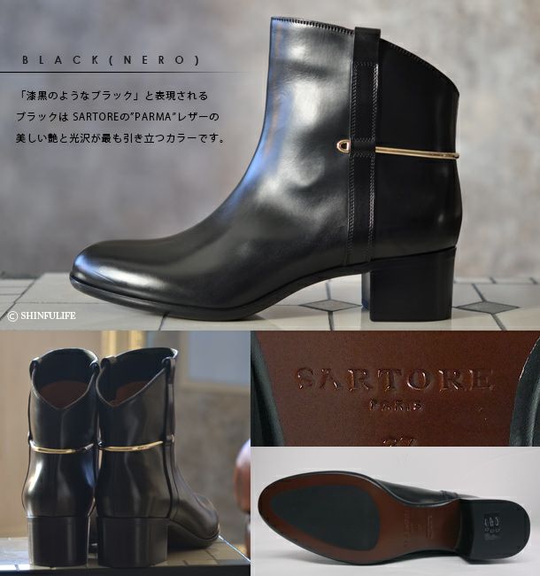 サルトル ブーティ SARTORE SR2414 PARMA ヒール4cm 太ヒール チャンキーヒール イタリア製 ブラック 黒 ダークブラウン 小さいサイズ アンクルブーツブーティー