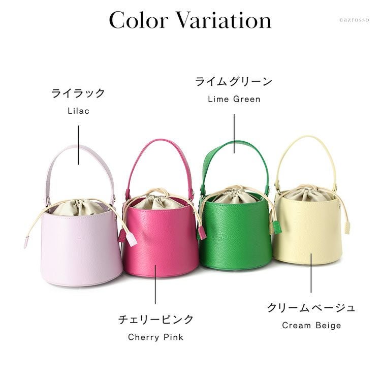 ▼特徴:2way|ハンドバッグ|バケツバッグ|ショルダーバッグ|ミニバッグ|バケツ型|筒型バッグ|マチ広い|沢山入る|肩掛け|斜め掛け|イタリア製|バケットバッグ|巾着|底鋲付き|自立