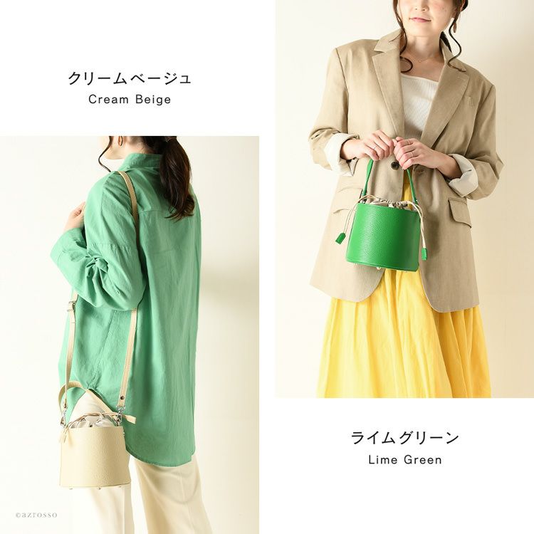 5. バケツバッグ 円筒バッグ 縦型 ハンドバッグ ミニバッグ イタリア製 レザー 2way ショルダーバッグ バケツ型 本革 肩掛け 斜めがけ ベージュ グリーン 緑 ピンク 底鋲付き 自立