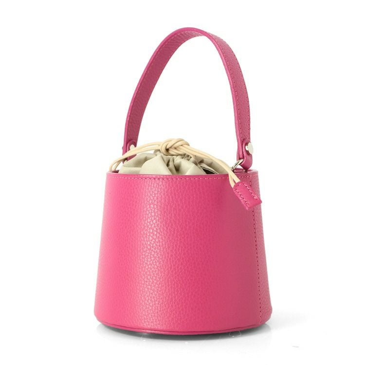 4. バケツバッグ 円筒バッグ 縦型 ハンドバッグ ミニバッグ イタリア製 レザー 2way ショルダーバッグ バケツ型 本革 肩掛け 斜めがけ ベージュ グリーン 緑 ピンク 底鋲付き 自立