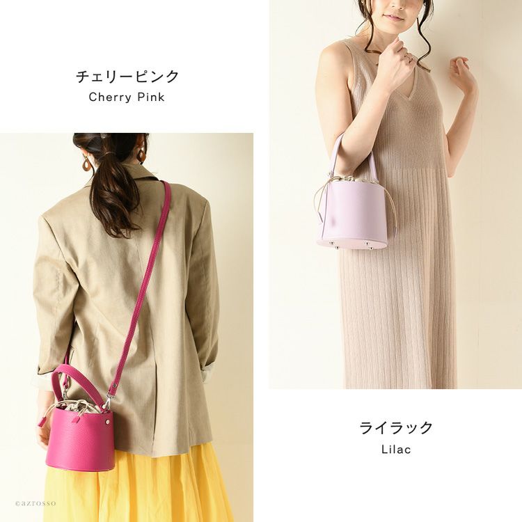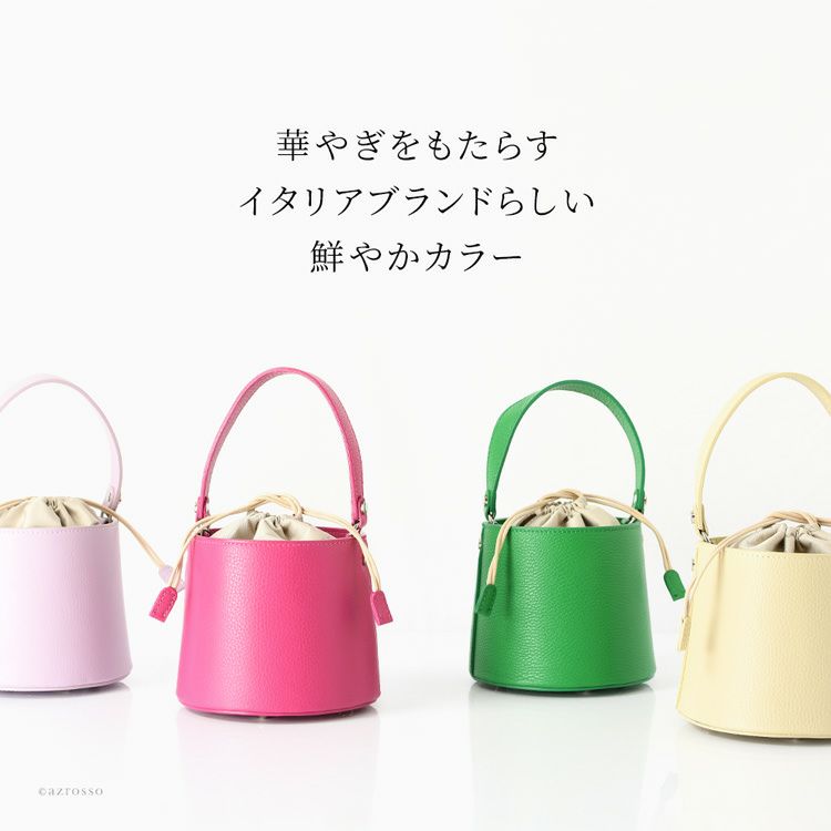 バケツバッグ 円筒バッグ 縦型 ハンドバッグ ミニバッグ イタリア製 レザー 2way ショルダーバッグ バケツ型 本革 肩掛け 斜めがけ ベージュ グリーン 緑 ピンク 底鋲付き 自立