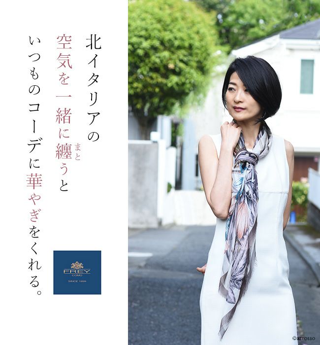 日本の横浜、フランスのリヨン、そしてイタリアのコモ。世界的に有名なシルクの産地のひとつとして名を馳せ、「世界最高水準」と評されるイタリアのCOMOより上質の大判ストールをお届けします。