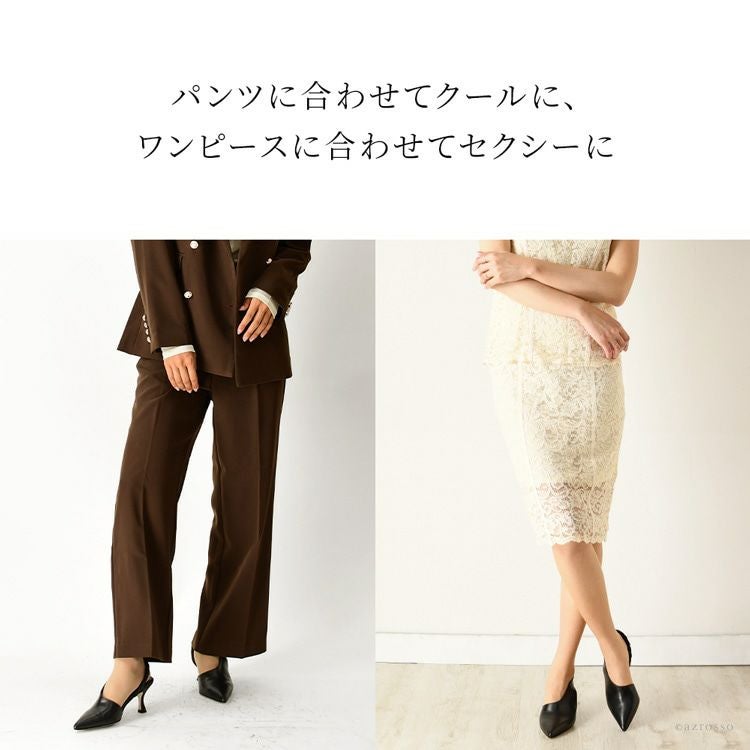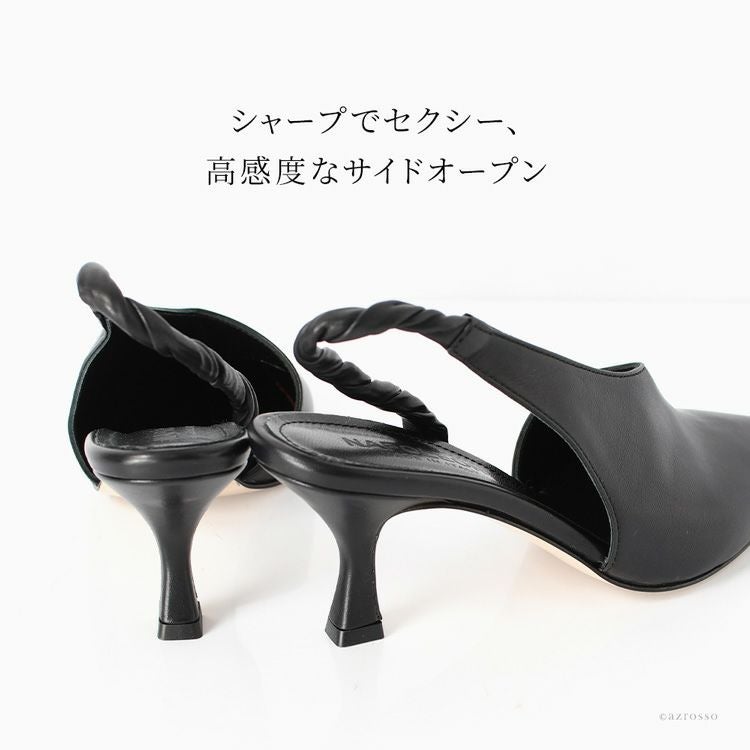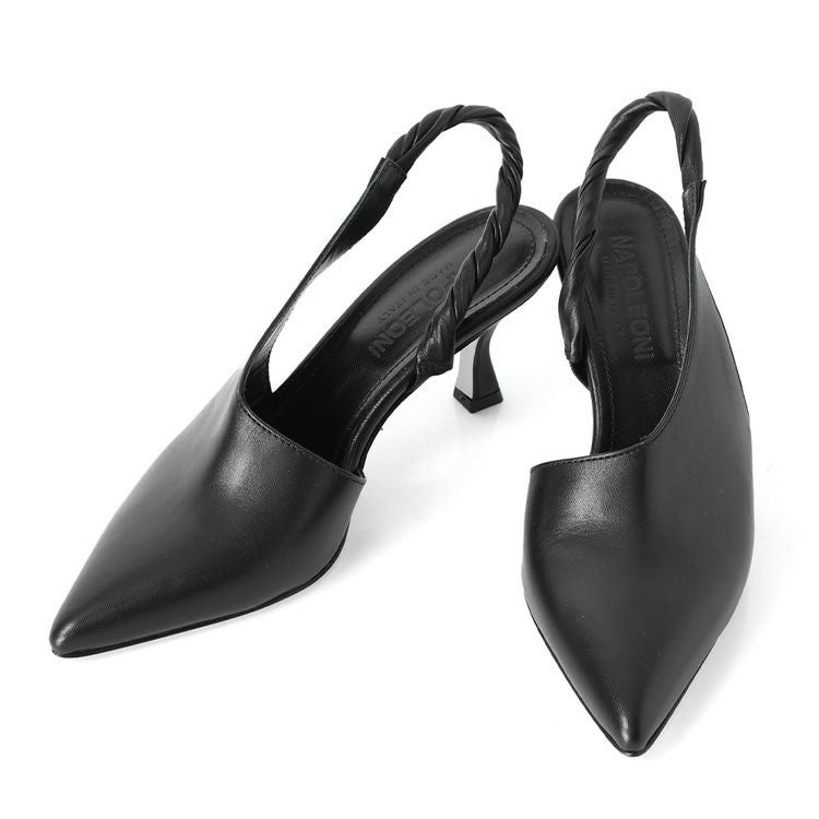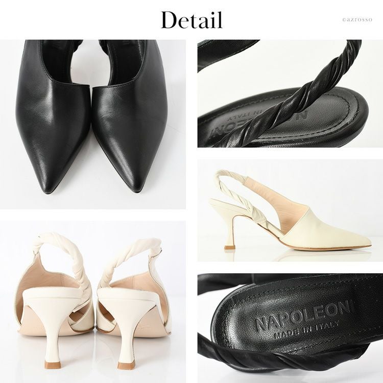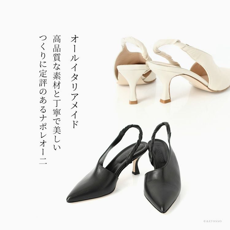23cm-25cm│ヒール6cm ミュール パンプス サイドオープン 本革 バックストラップ レザー フレンチヒール ポインテッドトゥ おしゃれ ブランド ホワイト 白 ブラック 黒 Napoleoni ナポレオーニ