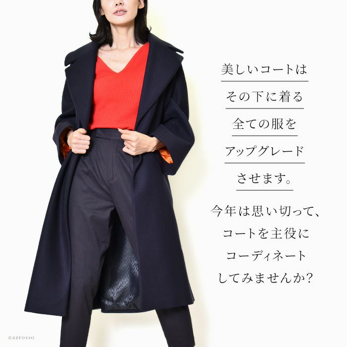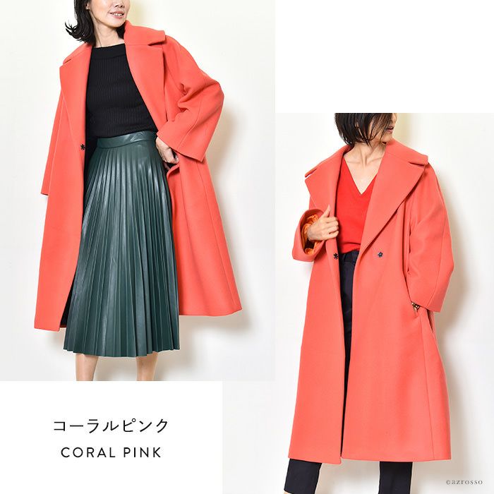 パッと目を惹く深くも鮮やかなチェスターコートをフランス パリの高級コート専門ブランドLENER(レネール レネル)から。希少で美しいバージンウール混レディースロングコートは秋冬の通勤 旅行にぴったり バージンウール チェスターコート ロング コート レディース アウター ブランド MAISON LENER メゾン レネール ネイビー コーラル ピンク
