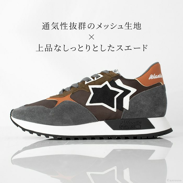 ブランドオリジナルのクラシックラインの進化系、メンズモデルPOLARIS(ポラリス)シリーズ。グレーベースの絶妙なカラーリングが、いつものコーデをグンとお洒落に アトランティックスターズ スニーカー メンズ ポラリス POLARIS GGFGFG11 MEN レザー グレー
