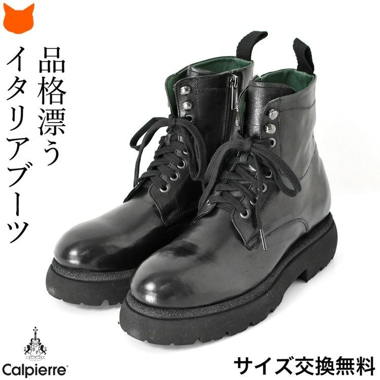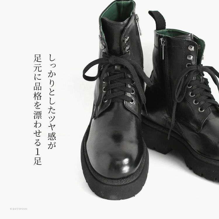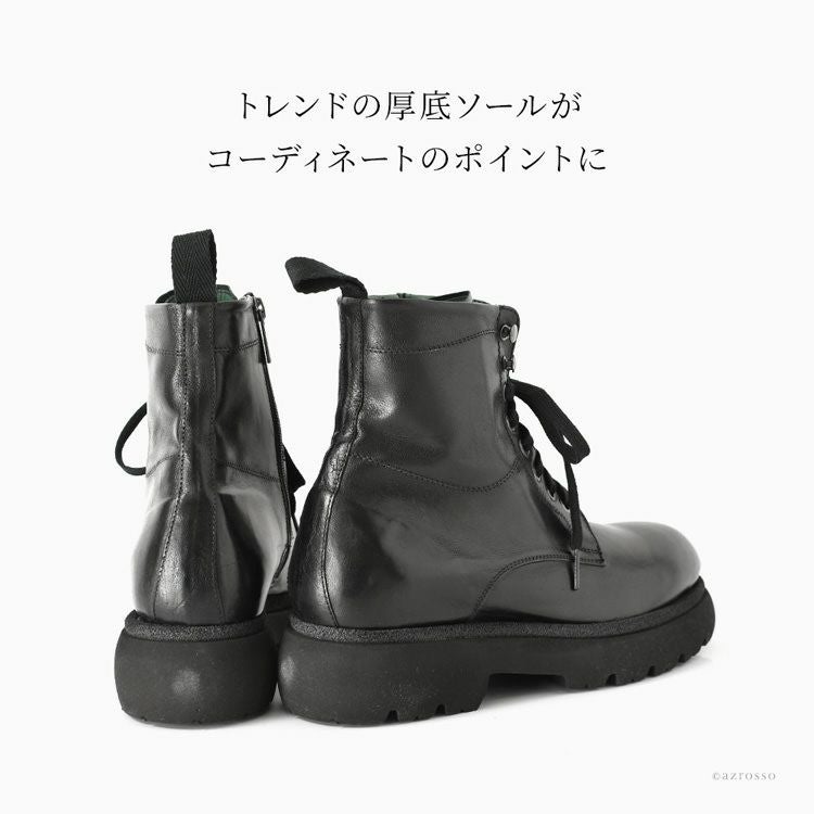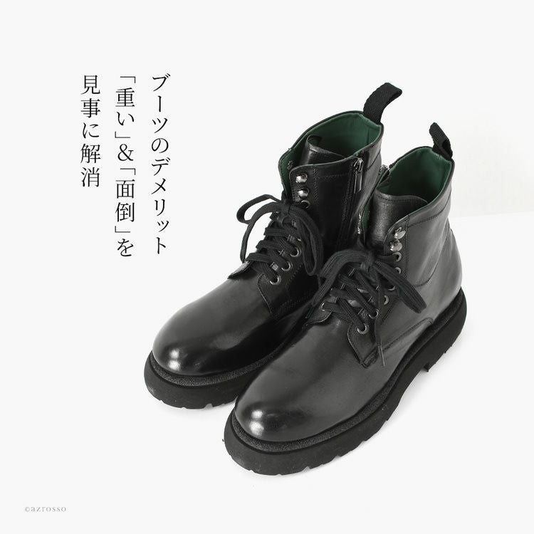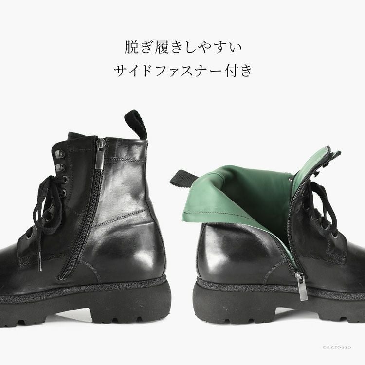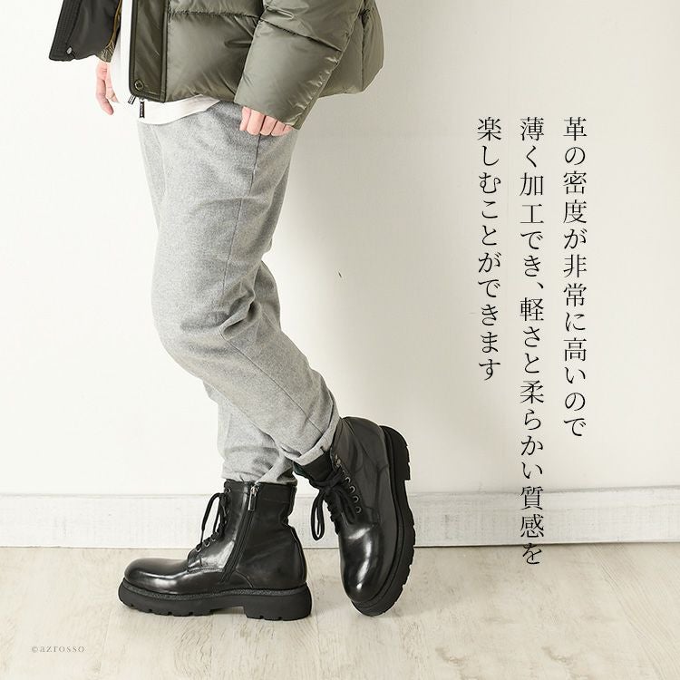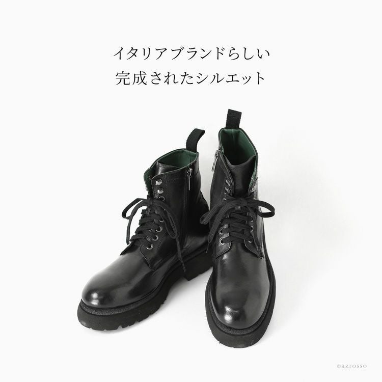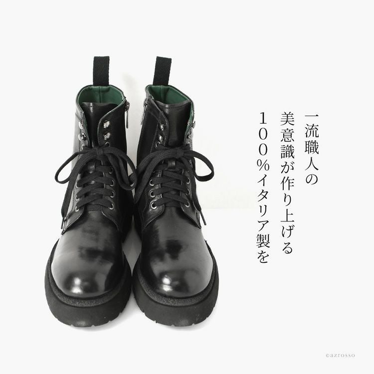 ※特価の為返品・キャンセル・交換無料サービス対応不可。※交換対応は、通常販売時のお買い物通りのご案内です。※サイズ交換希望で、ご交換希望サイズが欠品の場合は返品不可 本革 ブーツ サイドジップ ショートブーツ 編み上げ 黒 ブラック 編み上げブーツ 軽い 暖かい 歩きやすい 疲れない メンズブーツ レザー コンバットブーツ レースアップブーツ 厚底 タンクソール チャンキーソール イタリア製 メンズ