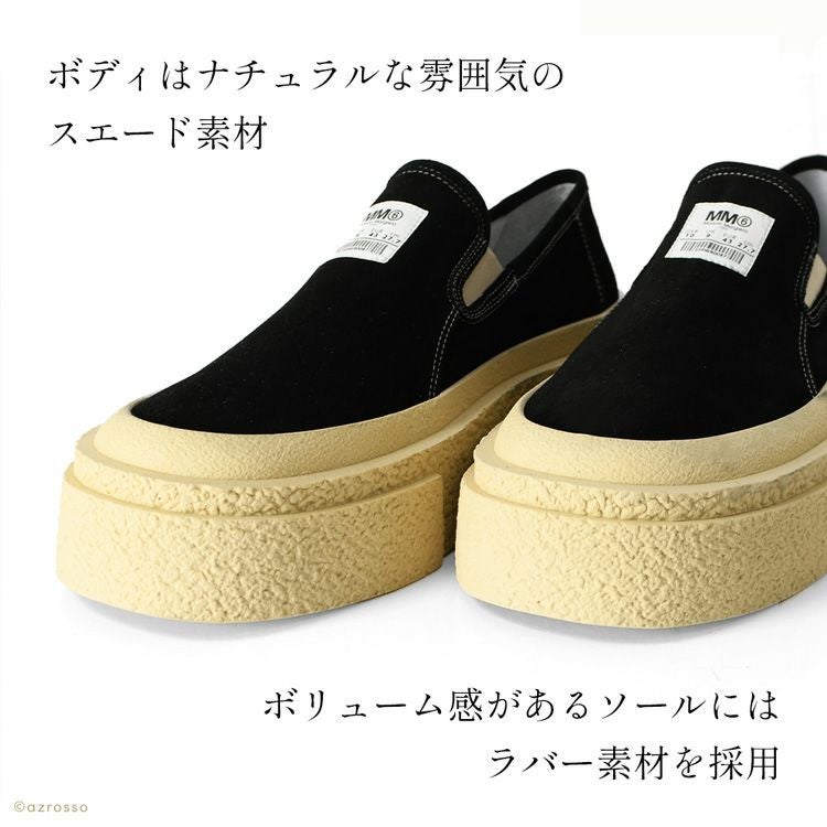※特価の為返品・キャンセル・交換無料サービス対応不可。※交換対応は、通常販売時のお買い物通りのご案内です。※サイズ交換希望で、ご交換希望サイズが欠品の場合は返品不可 mm6 Maison Margiela スリッポン 厚底 黒 スエード ローカット プラットフォーム メンズ イタリア製 ブランド エムエム6 メゾンマルジェラ S59WR0087P5246
