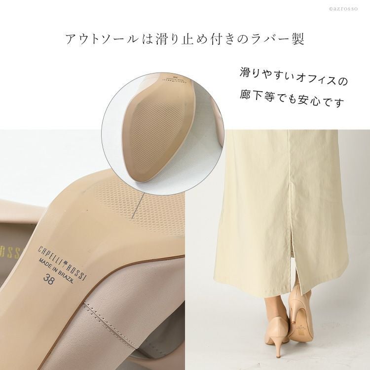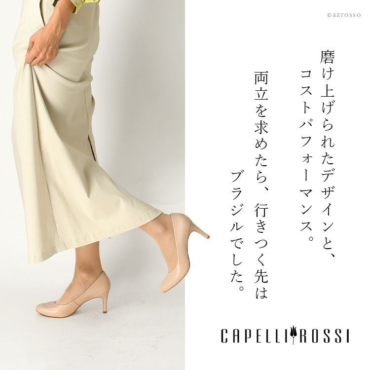 ※特価の為返品・キャンセル・交換無料サービス対応不可。※交換対応は、通常販売時のお買い物通りのご案内です。※サイズ交換希望で、ご交換希望サイズが欠品の場合は返品不可 ブラジルブランド CAPELLI ROSSI 本革 美脚 パンプス ラウンドトゥ 甲 幅広 ヒール8cm カペリロッシ