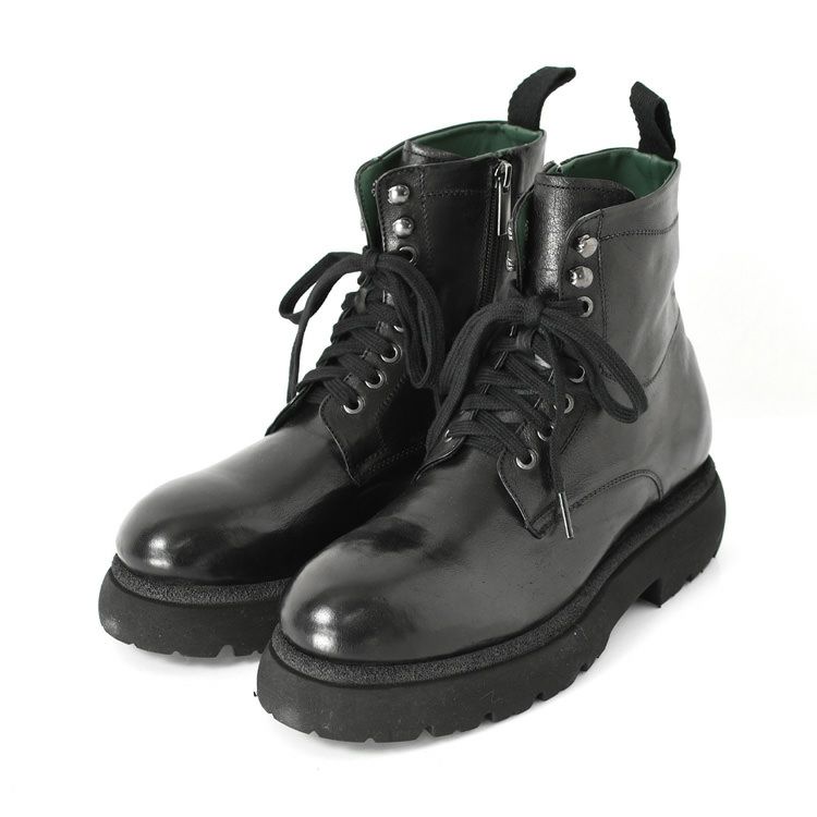 ※特価の為返品・キャンセル・交換無料サービス対応不可。※交換対応は、通常販売時のお買い物通りのご案内です。※サイズ交換希望で、ご交換希望サイズが欠品の場合は返品不可 本革 ブーツ サイドジップ ショートブーツ 編み上げ 黒 ブラック 編み上げブーツ 軽い 暖かい 歩きやすい 疲れない メンズブーツ レザー コンバットブーツ レースアップブーツ 厚底 タンクソール チャンキーソール イタリア製 メンズ