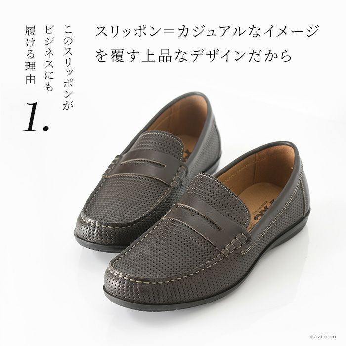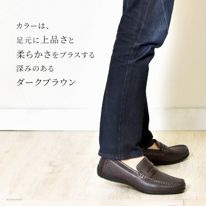 24.5cm-27cm|革靴の上品さとスリッポンの快適さを装備した、通勤ビジネスシューズ 休日カジュアルシューズ どちらもこなせる万能ローファー イントレチャート 風 レザー スリッポン メンズ ローファー ドライビングシューズ ブラウン イタリア製 imac イマック