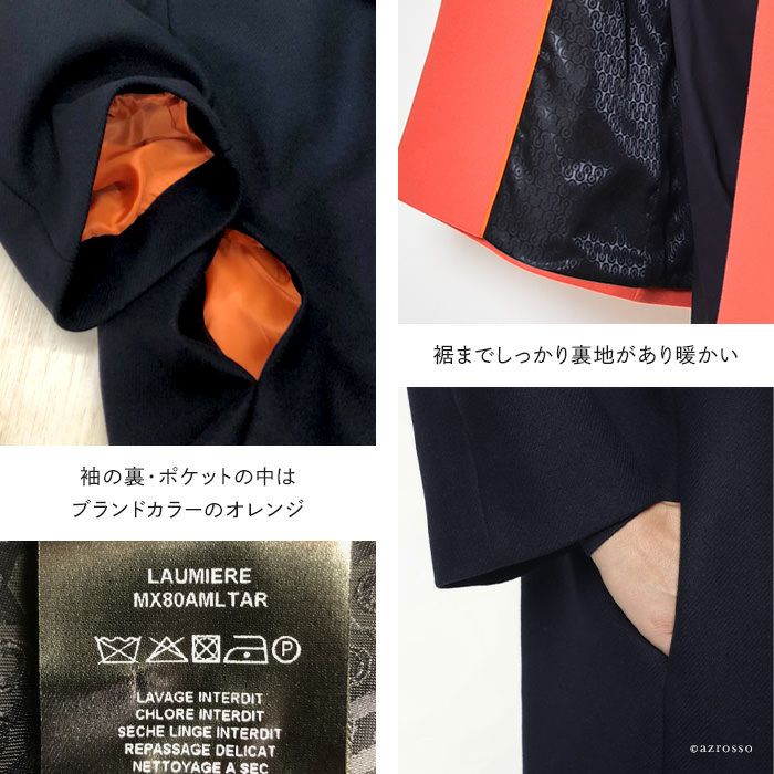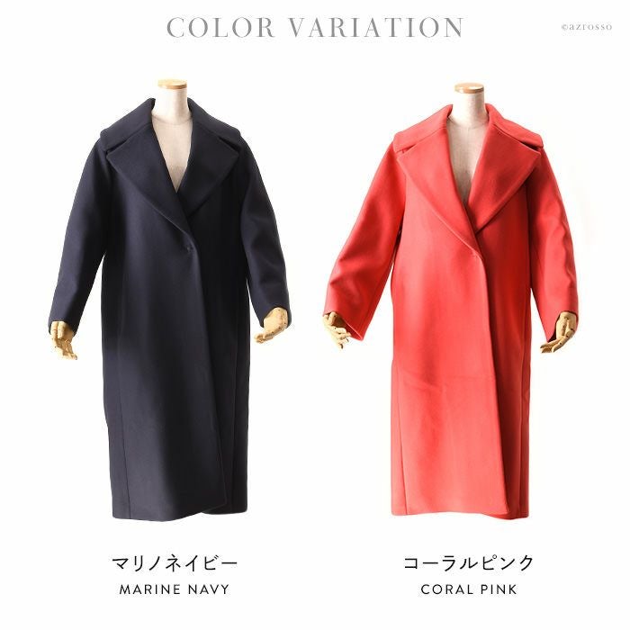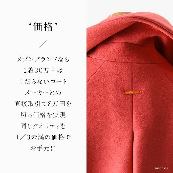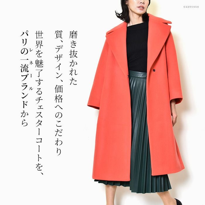 パッと目を惹く深くも鮮やかなチェスターコートをフランス パリの高級コート専門ブランドLENER(レネール レネル)から。希少で美しいバージンウール混レディースロングコートは秋冬の通勤 旅行にぴったり バージンウール チェスターコート ロング コート レディース アウター ブランド MAISON LENER メゾン レネール ネイビー コーラル ピンク