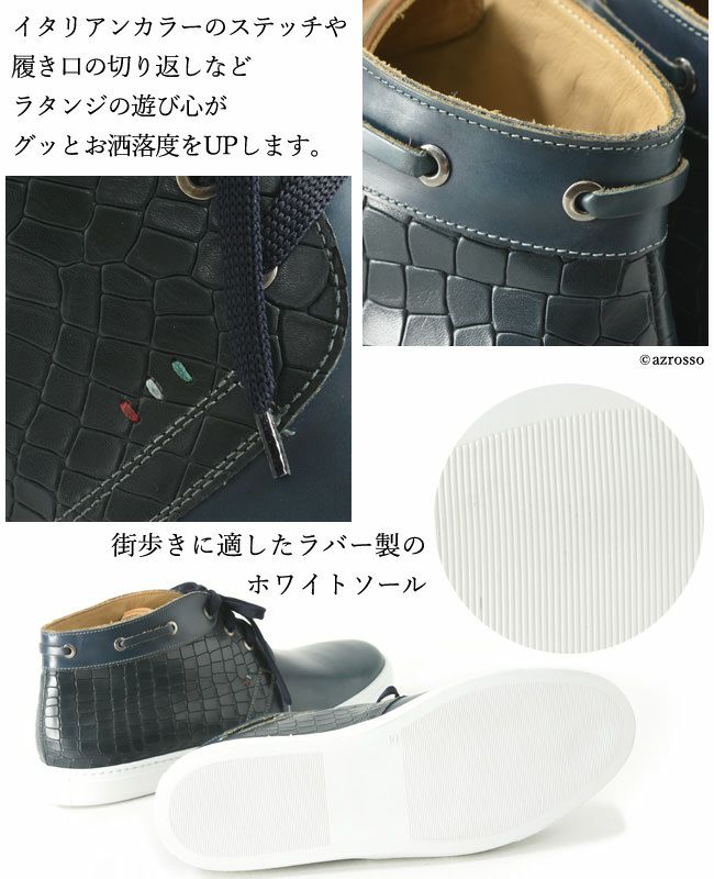 ※特価の為返品・キャンセル・交換無料サービス対応不可。※交換対応は、通常販売時のお買い物通りのご案内です。※サイズ交換希望で、ご交換希望サイズが欠品の場合は返品不可 レザー ハイカット スニーカー メンズ ジャンフランコ ラタンジ 型押しクロコレザー 本革 送料無料