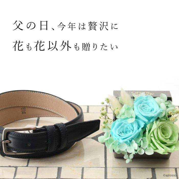 父の日プレゼント レザーベルト×お花のセット 枯れないお花 プリザーブドフラワーと実用的なギフトセット