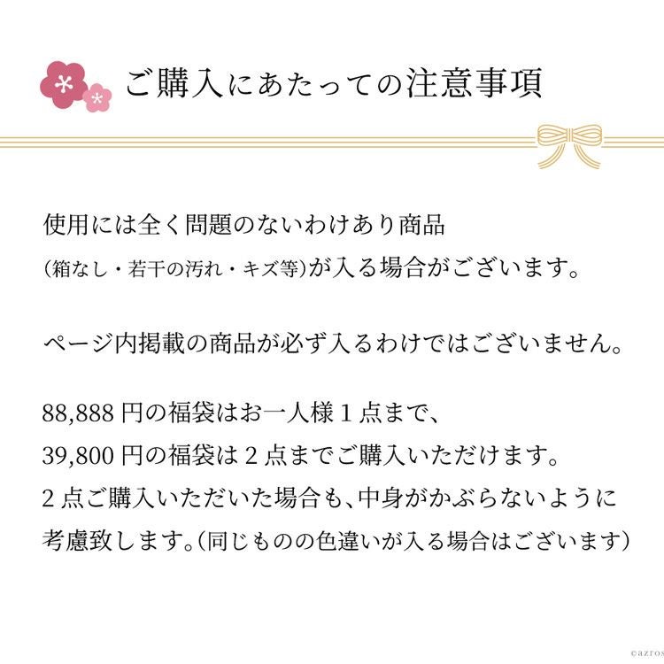 - 88888円の福袋はお一人様1点まで、それ以外の福袋は2点までご購入いただけます。