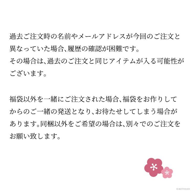 - 福袋以外を一緒にご注文された場合、福袋をお作りして
