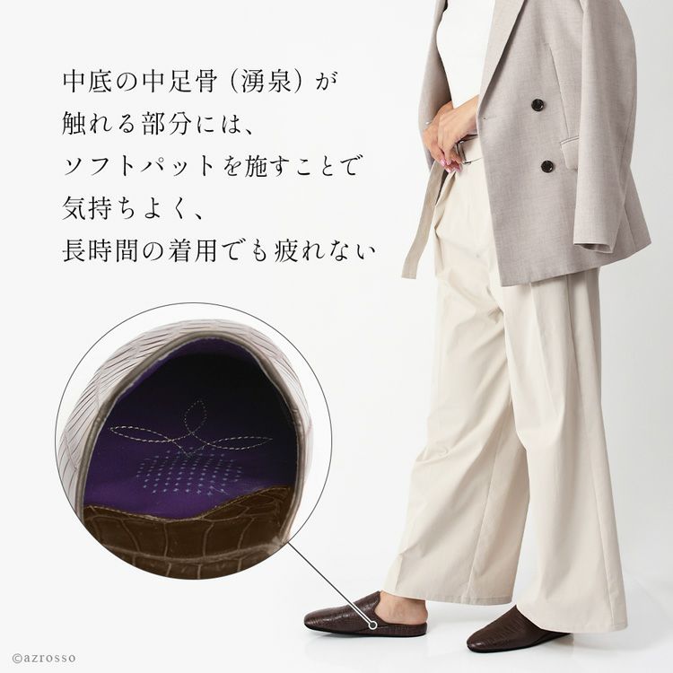 皇室御用達職人がつくる珠玉のクロコ型押しレザースリッパ。足と一体化するような快適な履き心地。日本製、抗菌・防臭・除電効果ありのレディースルームシューズ。名入れ刺繍対応 日本製 SANAX 高級 スリッパ モコ4501 クロコ型押し 革 ブランド サナックス 室内履き 来客用 ギフトにも