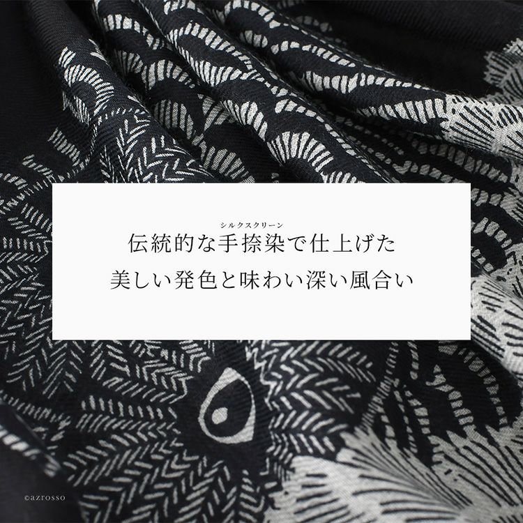 フクロウやオウムの中に紛れ込んだ一匹のネコが愛らしい、フランスブランド INOUI EDITIONS(イヌイエディションズ)の大判ストール。薄手で軽いのに暖かいウール100%。使い勝手の良い190cm×80cmの大きめサイズ。 ウール ストール 大判 おしゃれ 柄 猫 フクロウ オウム 薄手 暖かい レディース 黒 190×80 INOUI EDITIONS イヌイエディションズ ブランド