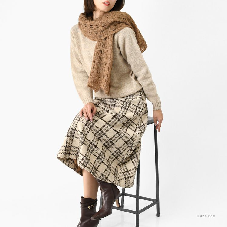 フランス製の上質なウール混ニットマフラー。秋冬コーデに馴染むブルー×グレーとブラウン×ベージュのおしゃれな配色。ちくちくしないロングマフラーは、大切な女性へのプレゼントにも最適。 ニット ロングマフラー ウール混 フランス製 ブランド ちくちくしない 柄 レディース 180×24 MAISON BONNEFOY メゾンボンヌフォア