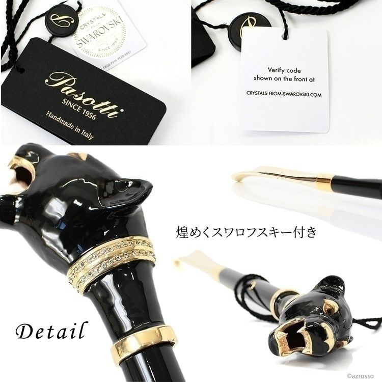 ブラックパンサー 靴べら スワロフスキー アニマル ヘッド 高級 シューホーン 黒 豹 クロヒョウ ゴールド 靴ベラ イタリア製 おしゃれ かっこいい メンズ