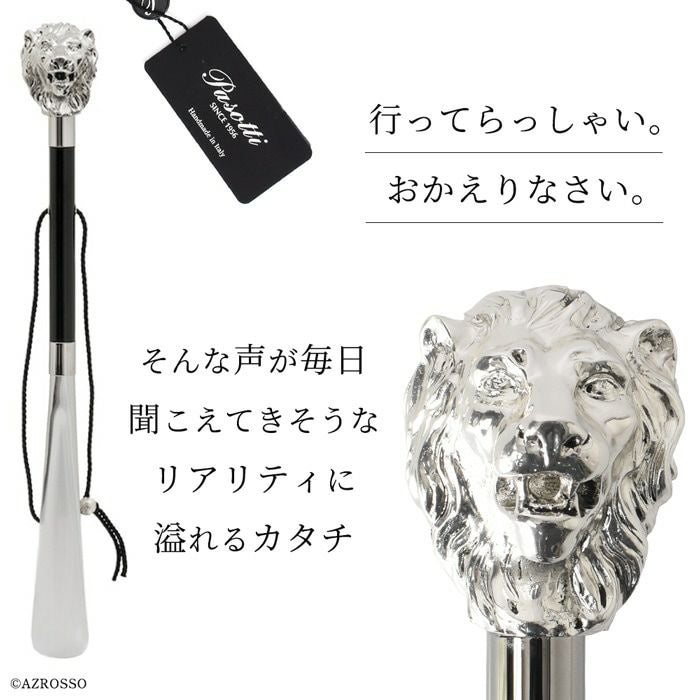 パソッティ アニマルヘッドシューホーン ライオン シルバーのおしゃれな靴べら pasotti イタリア製