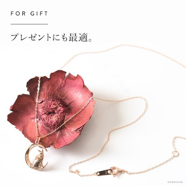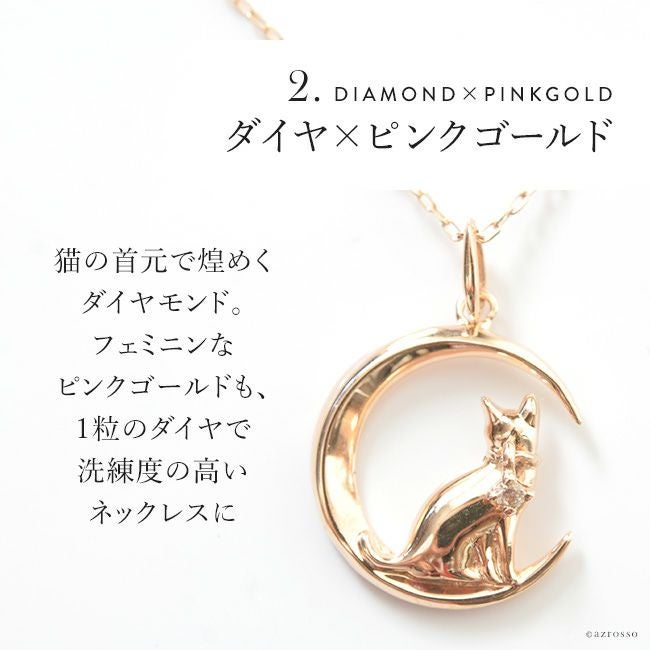 ピンク ゴールド ネックレス 猫 ペンダント ダイヤ 三日月 シンプル コタラッテピーポー 日本製 40cm 誕生石 プレゼント