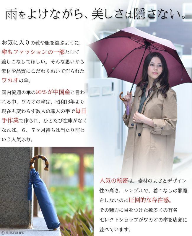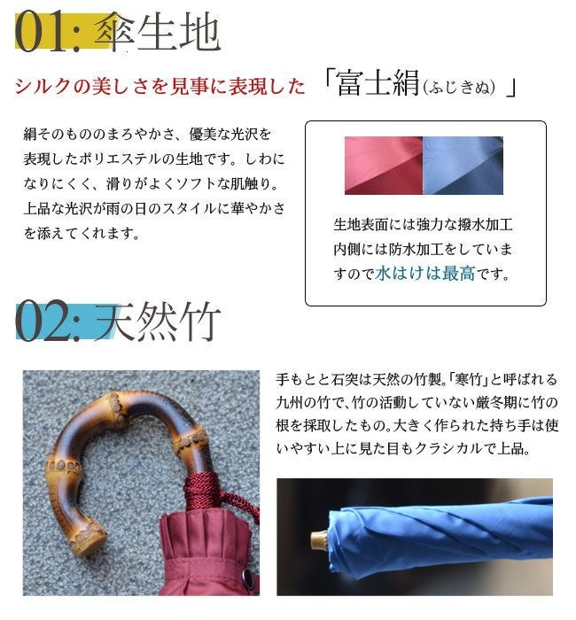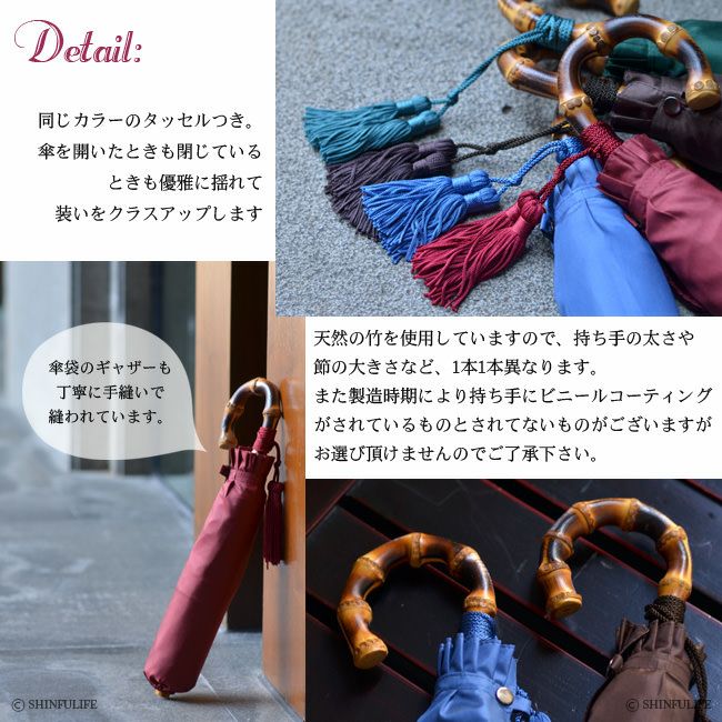 ワカオ 傘 折りたたみ 日本製 WAKAO バンブーハンドル タッセル 傘袋付きのおしゃれな折りたたみ傘