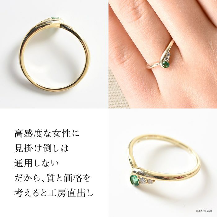 エメラルド Vライン リング ダイヤモンド k10 ゴールド コタラッテピーポー 日本製 誕生日 プレゼント