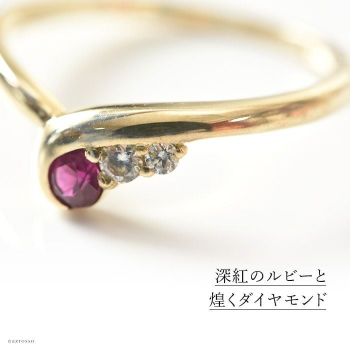 ルビー Vライン リング ダイヤモンド k10 ゴールド コタラッテピーポー 日本製 誕生日 プレゼント