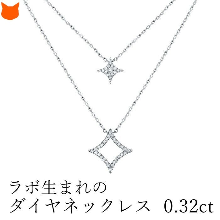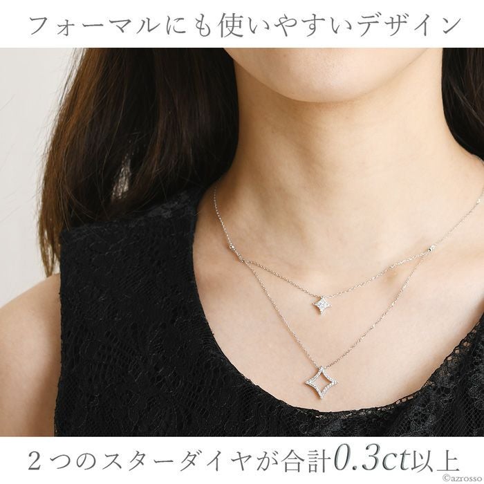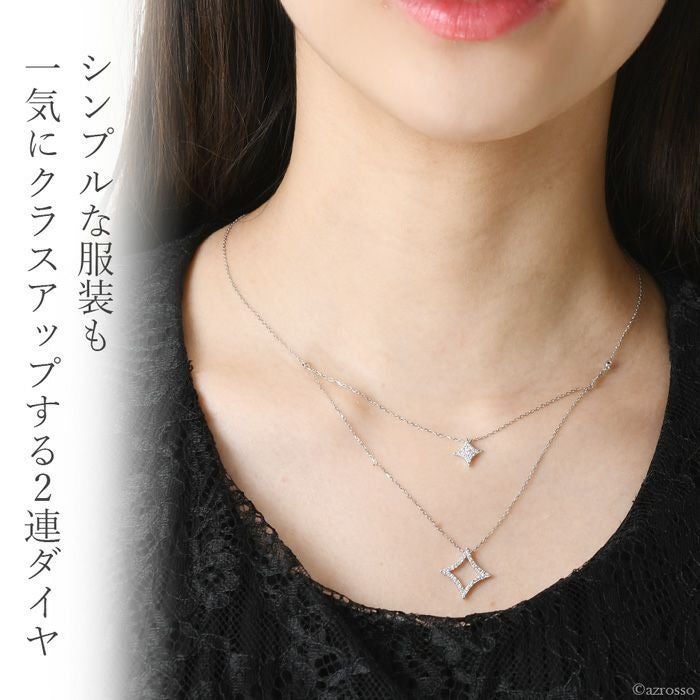 意外と難しいネックレスの重ねづけ。簡単に胸元が華やかになる2連タイプ【SMILING ROCKS】 2連 ダイヤモンド ネックレス 10k ホワイトゴールド 0.32カラット ラボグロウンダイヤモンド