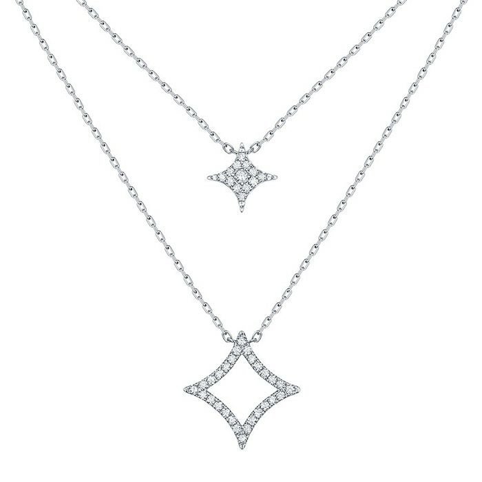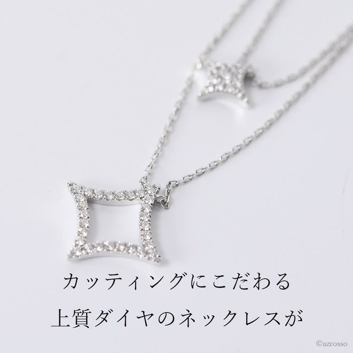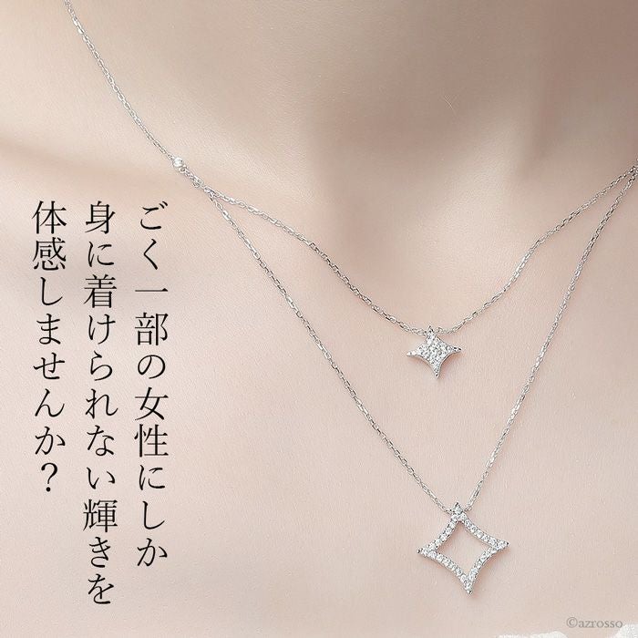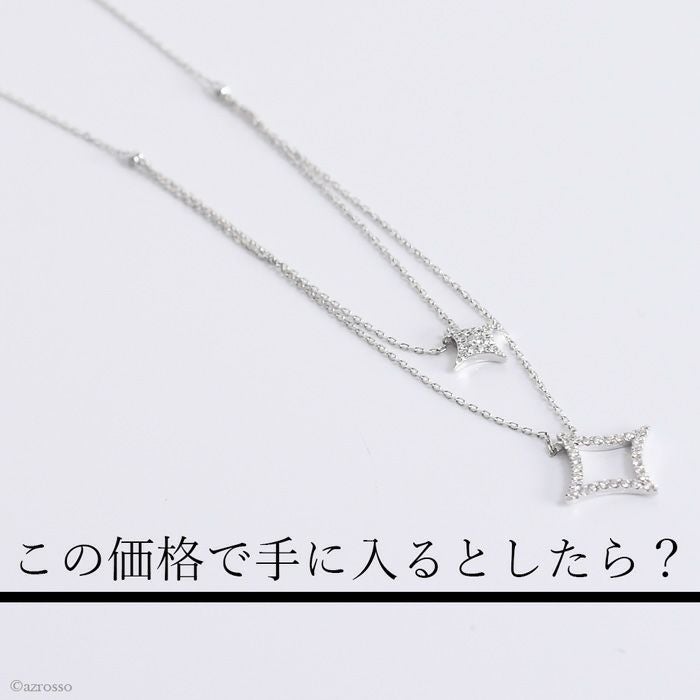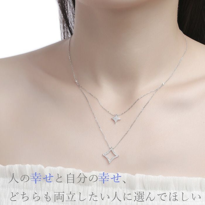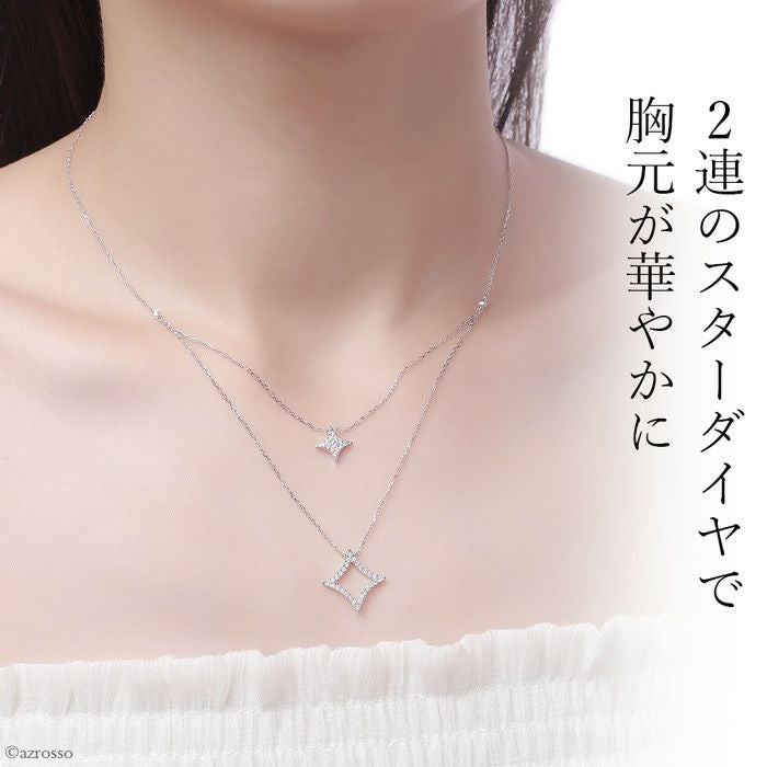 ▼特徴:スターモチーフ|2連ネックレス|星|ひし形|菱形|華奢|シンプル|ダイヤモンド|宝石|ペンダント|レディース