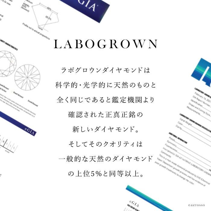 このラボグロウンダイヤは、科学的、光学的に全く同じダイヤモンドであると鑑定機関より確認されたもの。そしてそのクオリティは、一般的な天然のダイヤモンドの上位5%と同等以上となります。