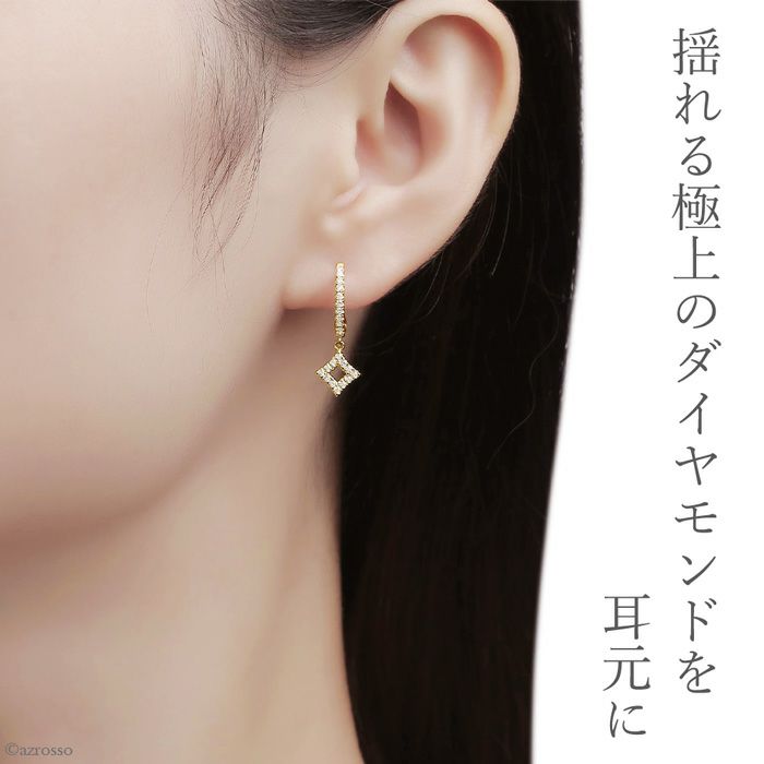 ▼特徴:フープピアス|フープ型|ひし形|菱形モチーフ|ゆらゆら|揺れる|両耳|華奢|シンプル|ダイヤモンド|宝石|レディース