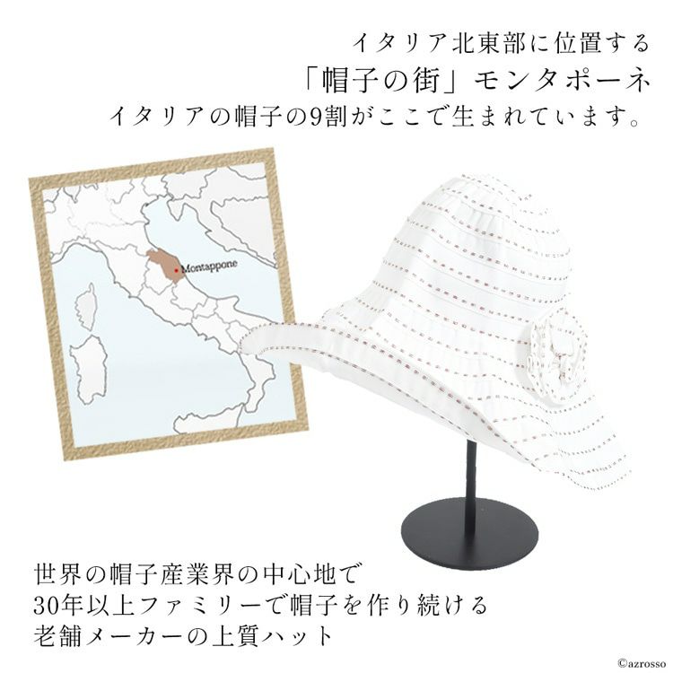 花のモチーフは取り外し自由。おしゃれで可愛いイタリアの日よけ帽子 つば広 14cm イタリア製 UVカット帽子 フレキシブルハット 折りたたみ VECCH ヴェッキ