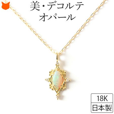 胸元を美しくするオパール。希望という石言葉とともに、日本の一流職人の手から/ オパール ネックレス 18k ゴールド ダイヤ ペンダント K18YG 天然石 コタラッテ 日本製 10月 誕生石 プレゼント