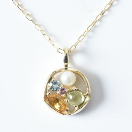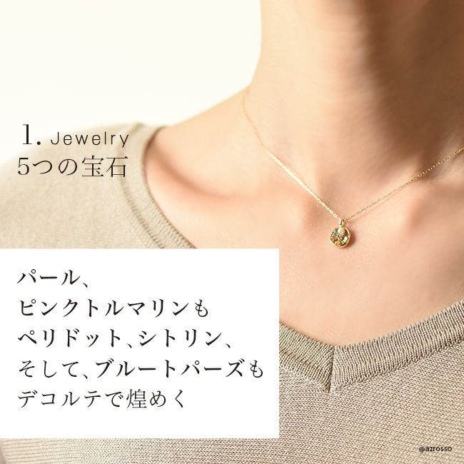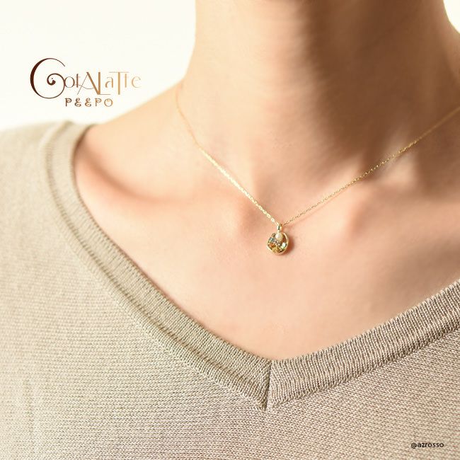 胸元を美しく彩る華奢な5つの宝石(パール ピンクトルマリン ペリドット シトリン ブルートパーズ)とゴールド。上品なアクセサリーを日本の一流職人の手から/ ゴールド ネックレス ラウンド ペンダント パール ピンク トルマリン ペリドット シトリン ブルートパーズ 日本製 40cm コタラッテピーポー