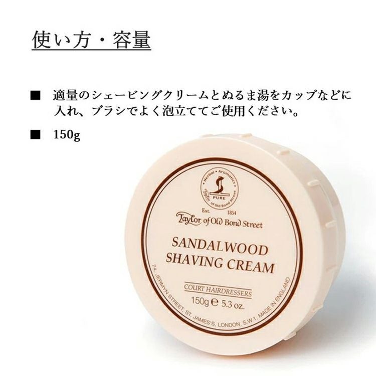サンダルウッドシェービングクリーム 150g テイラーオブオールドボンドストリート Taylor of Old Bond Street 敏感肌用 メンズ ひげそりクリーム 【ラッピング不可】
