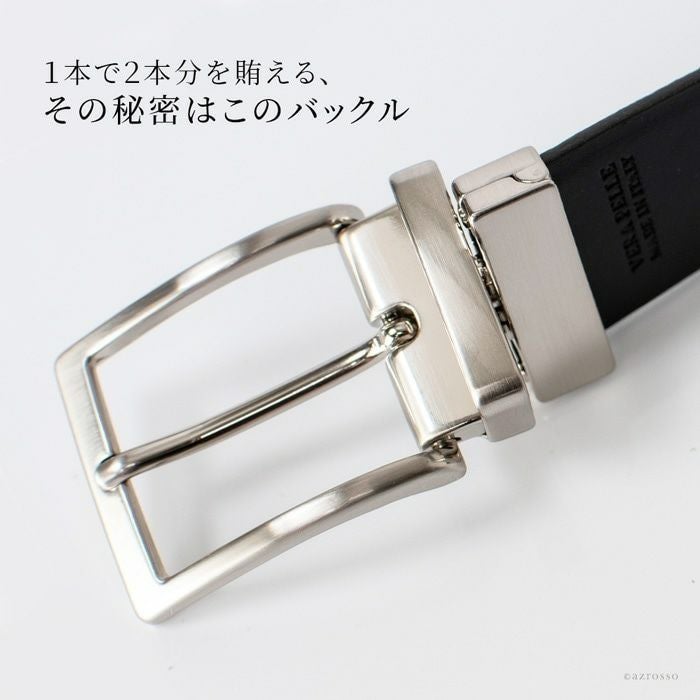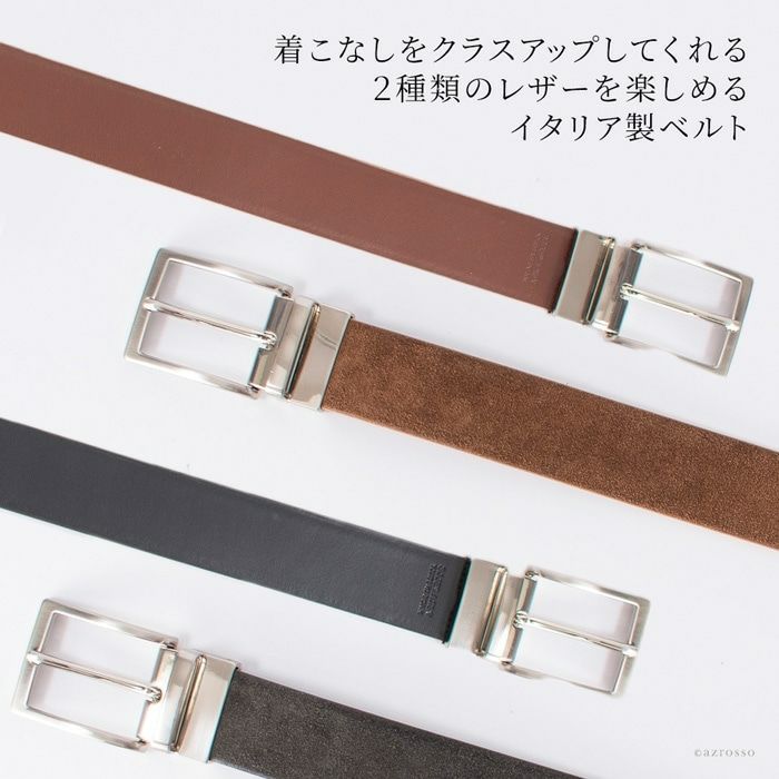 バックルをくるりと回転させることで、スエードとスムースレザーの両方をリバーシブルで楽しめるイタリア“チーロエスポジト”の本革メンズベルト。男性へのプレゼント、ギフトにもオススメです。 レザー ベルト メンズ イタリア製 リバーシブル ブラック 黒 ブラウン 茶色 2way スエード スムースレザー