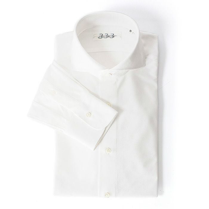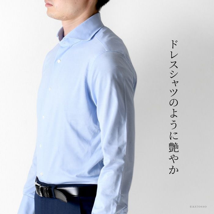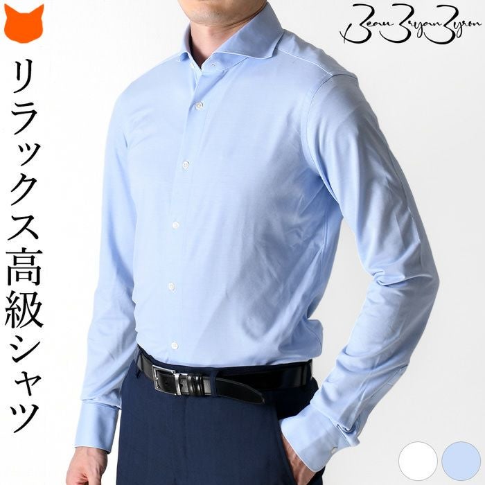 しわになりにくいニット仕立てのストレッチシャツ。日本のモノづくりならではの強みを活かす ボーブライアンバイロン(BBB) 首回りがこすれない 伸びる ニットシャツ 長袖 日本製 シャツ ストレッチ メンズ 白 ホワイト ブルー 水色 青
