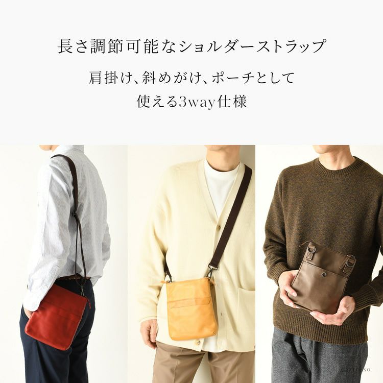 ワンマイルから旅行まで重宝する軽量ミニショルダーバッグを豊岡市の鞄ブランド服部(はっとり)より。高級感ある馬革製。肩掛け、斜めがけできるストラップ付き。取り外してポーチとしても使えるメンズバッグ ミニ ショルダーバッグ 斜めがけ 本革 軽量 軽い 縦型 コンパクト スクエア ミニバッグ ショルダー バッグ 日本製 豊岡 鞄 かばん 小さめ 鞄 黒 黄色 紺 茶色 赤 2way サブバッグ シンプル きれいめ メンズ